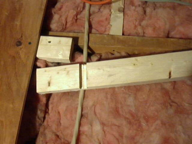 In March 2002 John started in on a home improvement project, creating a storage area in the attic. Since the house was built around 1965 there has never been any access to the attic. John cut a hole in the hallway ceiling and entered the unknown world. Below are pictures showing how the project unfolded. Work continued as time permitted until project completion on 13 July 2002. A total of 102 hours were expended in the project as follows: John 86, Brad 6, Stanford 6, Heather 1, Tony Eberhard 3.