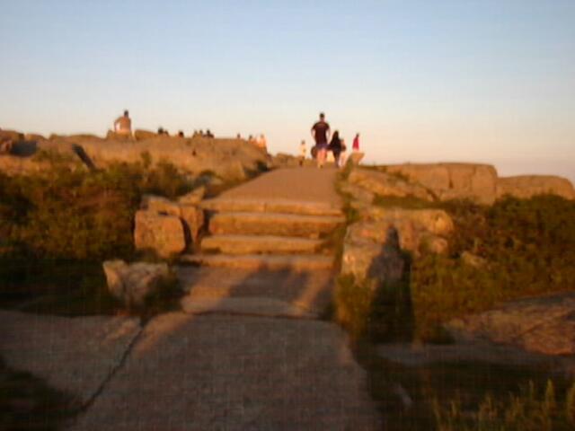 We stayed in Blackwoods Campground in Acadia National Park on Mount Desert Island, Maine from June 24th through July 2nd. It was a wonderful time. We did miniature golf one day, went to Jordan Pond and had popovers and a "beverage" another day. One nice warm afternoon we went to Echo Lake for some swimming. Cadillac Mountain was a very scenic sight. Brad, Stan and John rode the entire Park Loop road on bicycles including a ride up Cadillac Mountain, 1500 feet up. We camped and had a very fun time. We would like to go back someday.